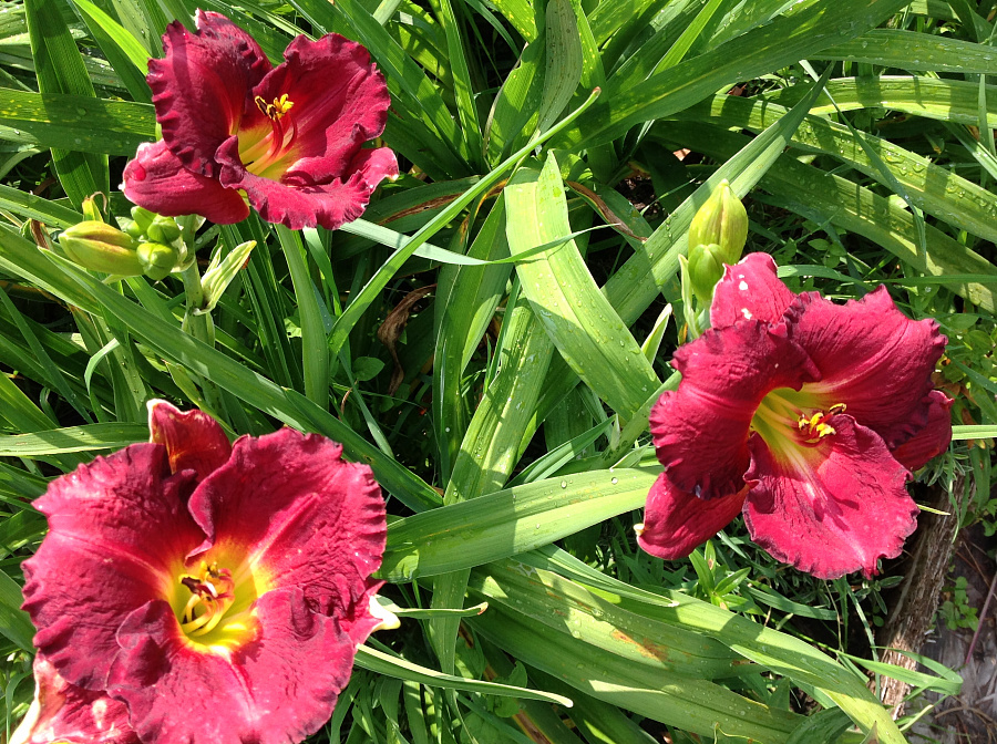• небольшие требования в уходе. Цветки лилейника Джордан отличаются темно-бордовым оттенком слегка гофрированных по краю лепестков. Лимонно-желтое горло отделено от основного цвета красноватым глазком. После цветения можно собрать семена, которые хранятся довольно долго и могут проращиваться.