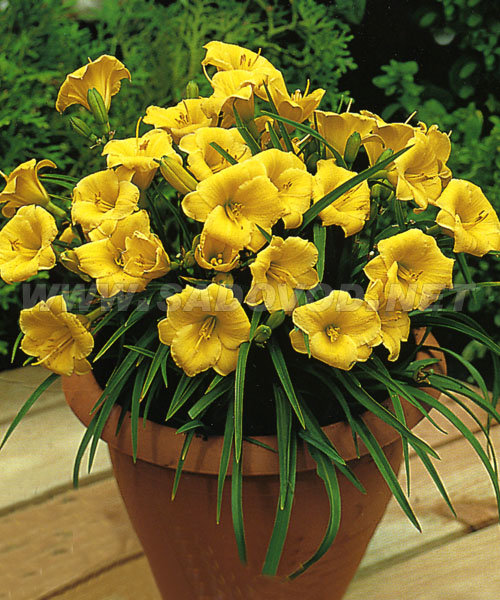 Рассада лилейника Мини Стелла (Mini Stella) – это корневищное многолетнее травянистое растение, которые увеличивается до 30 см в высоту Его цветы, как правило, значительно возвышаются над листьями. Для успешной посадки лучше подобрать солнечные участки без дополнительных затемняющих деревьев вокруг. Так лилейник будет цвести обильно и массово. При размещении в полутени этот эффект немного нарушается. Начало цветения приходится на середину июля, на стебле появляется желтый цветок с нежно-оранжевой сердцевиной с едва заметной каймой у её краев. Цветки ароматные, но небольшие – всего 3 см в диаметре. Зимой рассаду не нужно укрывать, особенно при правильном подборе почвы – она должна быть проницаемой, обогащенной органическими удобрениями и другими питательными компонентами для растения.