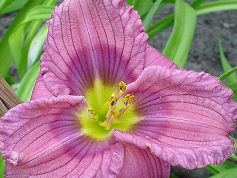 Окраска цветка : розовато-лиловая с сиреневым глазом и желто-зеленым горлом