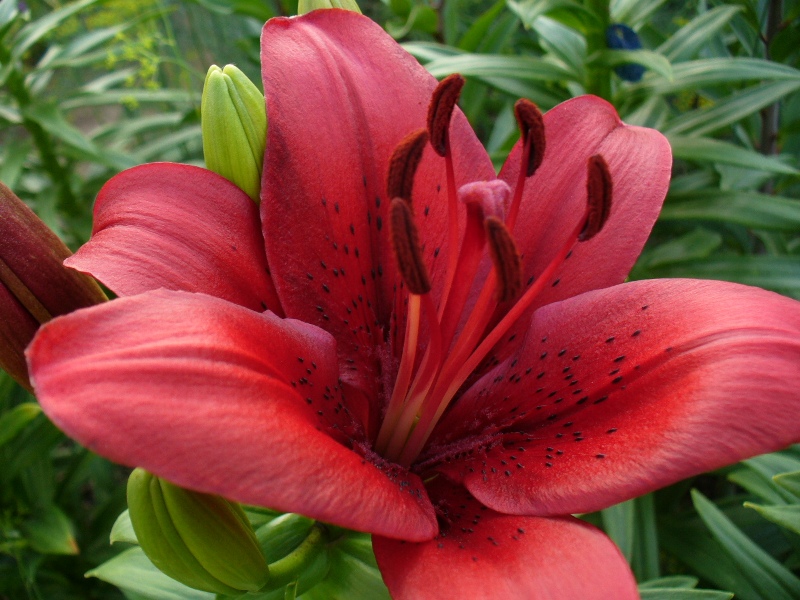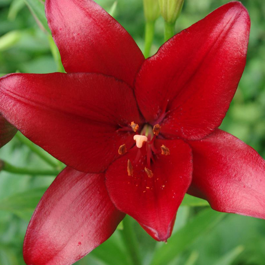• Окраска цветка : красный, глянцевый, пыльники оранжевые
