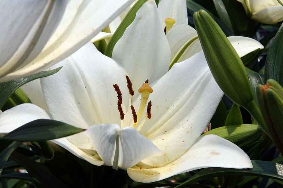 Луковицы лилии восточной горшечной Тру Эмоушн (Lilium True Emotion) — это яркая экзотика для украшения клумб и придомовых участков. Кусты этого сорта пышные, с прочными стеблями, особенно ценятся за устойчивость к заморозкам. Также они редко подвергаются воздействию инфекционных заболеваний и вредителей. Главное украшение лилии — это ее цветы, которые в конце лета начинают распускаться в большом количестве. Лепестки этого сорта классического белого цвета, с контрастными темными пыльниками. Они достигают 16 см в диаметре и появляются на цветоносах целыми букетами. Благодаря обильному цветению лилия Тру Эмоушн подходит не только для групповых, но и для одиночных посадок.