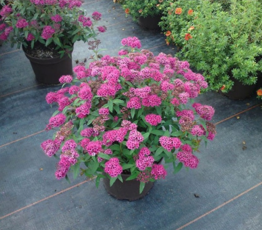 Саженцы японской спиреи Неон Флеш (Neon Flash) порадуют невероятным цветением, которое повторяется дважды за сезон. В начале лета и в сентябре кустарник покрывается многочисленными щитковидными соцветиями. Это удивительное растение широко применяется в ландшафтном дизайне.