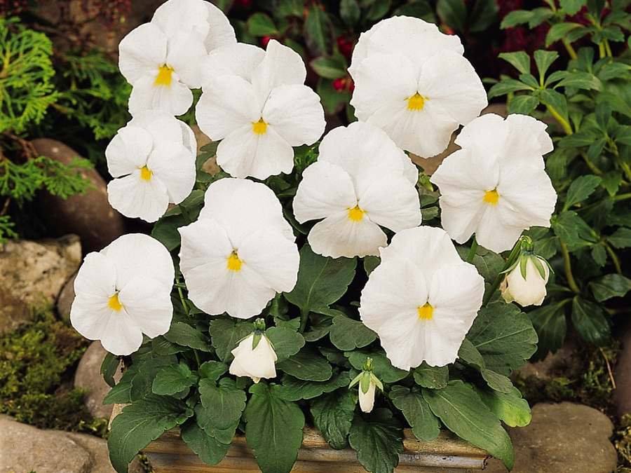 Виола крупноцветковая экстрада вайт - это изысканное растение с белоснежными цветками, которые радуют глаз своей красотой. Этот сорт виолы отличается высокой морозостойкостью и может процветать даже в самых суровых условиях. Высота растения достигает 15-20 см, что делает его идеальным для групповых посадок в саду или на клумбе.